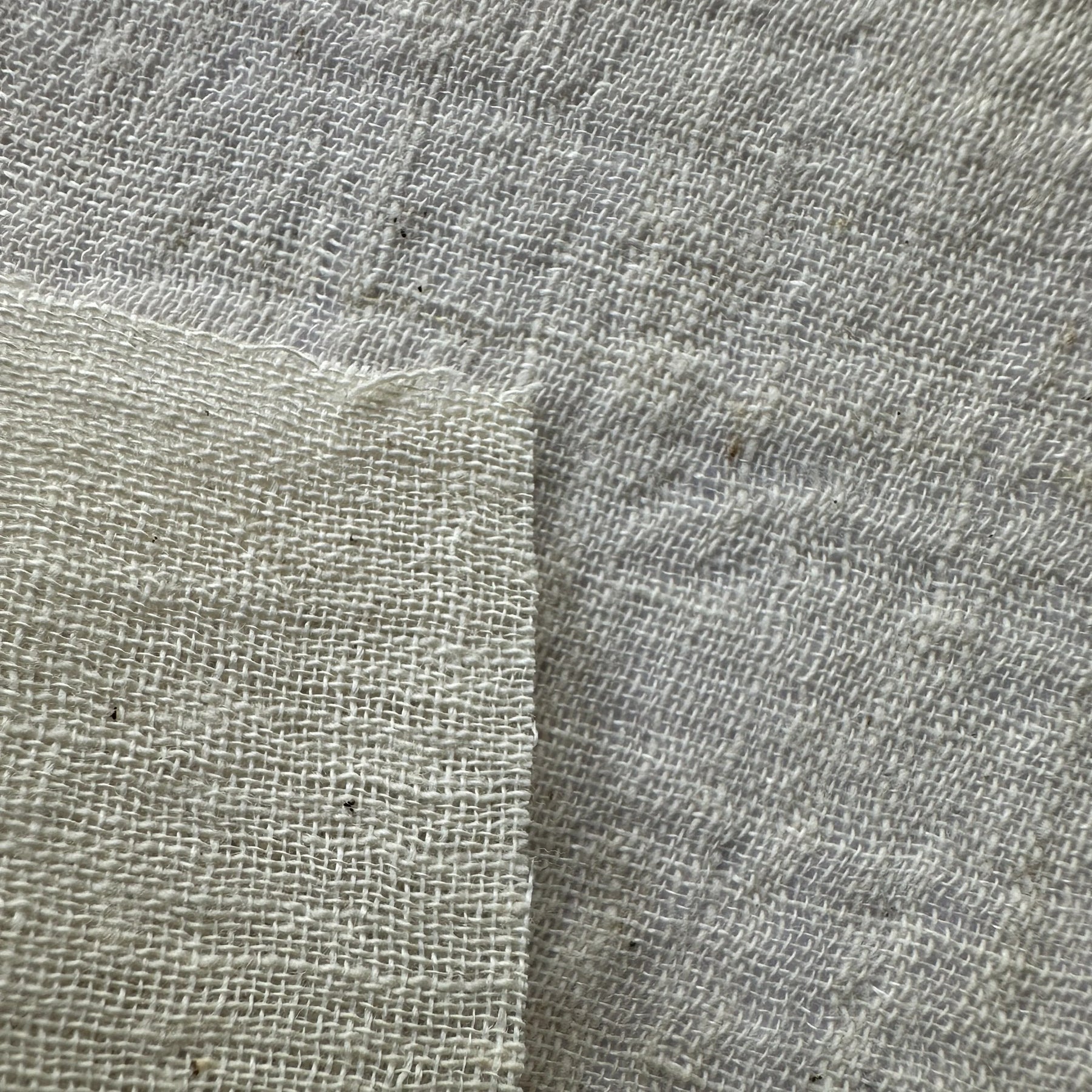 Indulge in the luxurious and sustainable quality of our handspun and handwoven kala cotton linen fabric — an exquisite 50% Kala Cotton and 50% Linen blend, meticulously crafted on traditional handlooms in Kutch, Gujarat, offering exceptional strength, organic softness, and a unique Gsm 110-120 GSM texture while directly supporting traditional artisans.